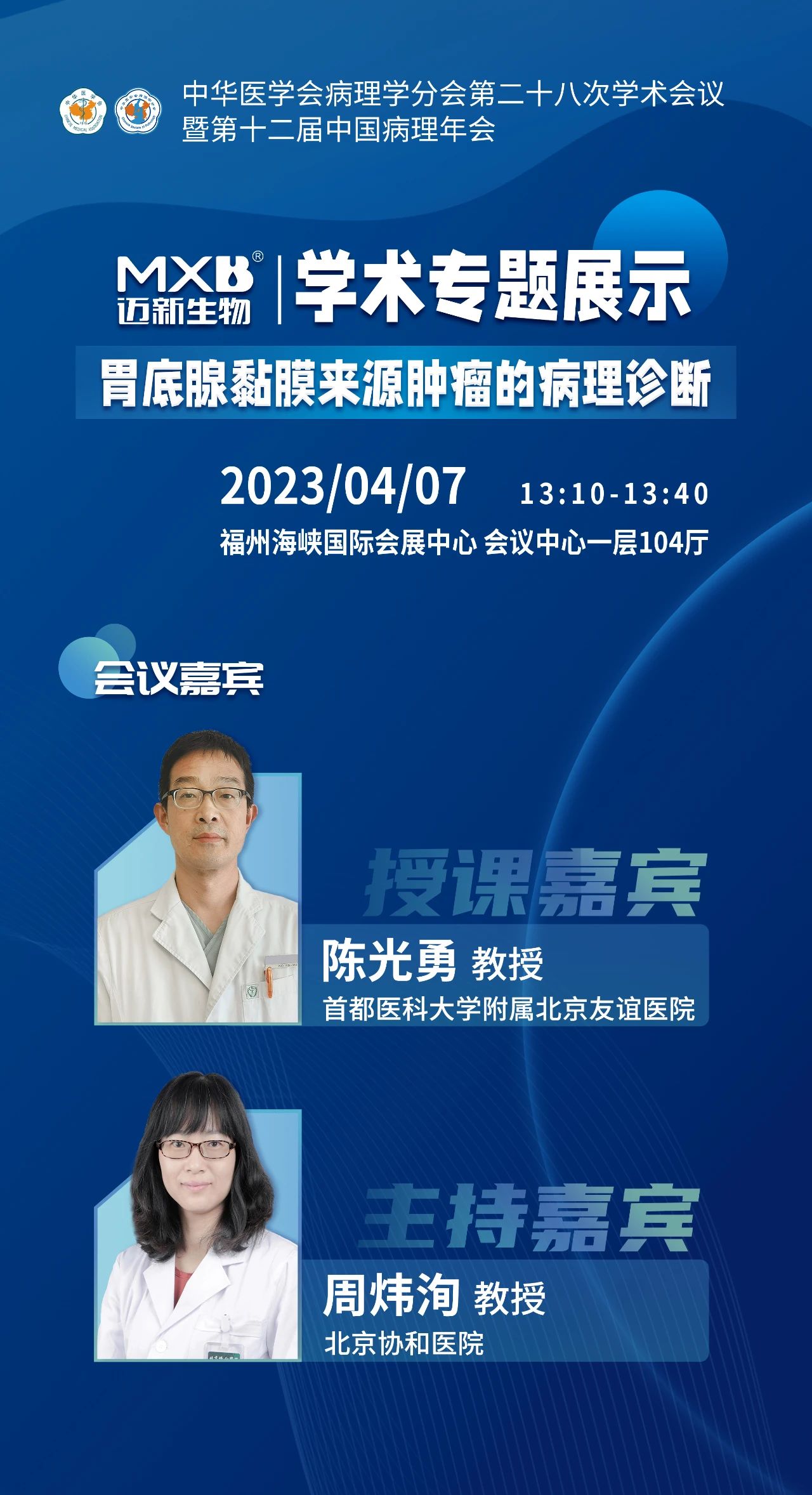 會議期間,邁新將舉辦“胃底腺黏膜來源腫瘤的病理診斷”專題衛星會,邀請首都醫科大學附屬北京友誼醫院陳光勇教授、北京協和醫院周煒洵教授與各位病理同仁聚焦胃癌新亞型——胃底腺型腺癌診斷新進展,研討診療新思路,敬請期待!