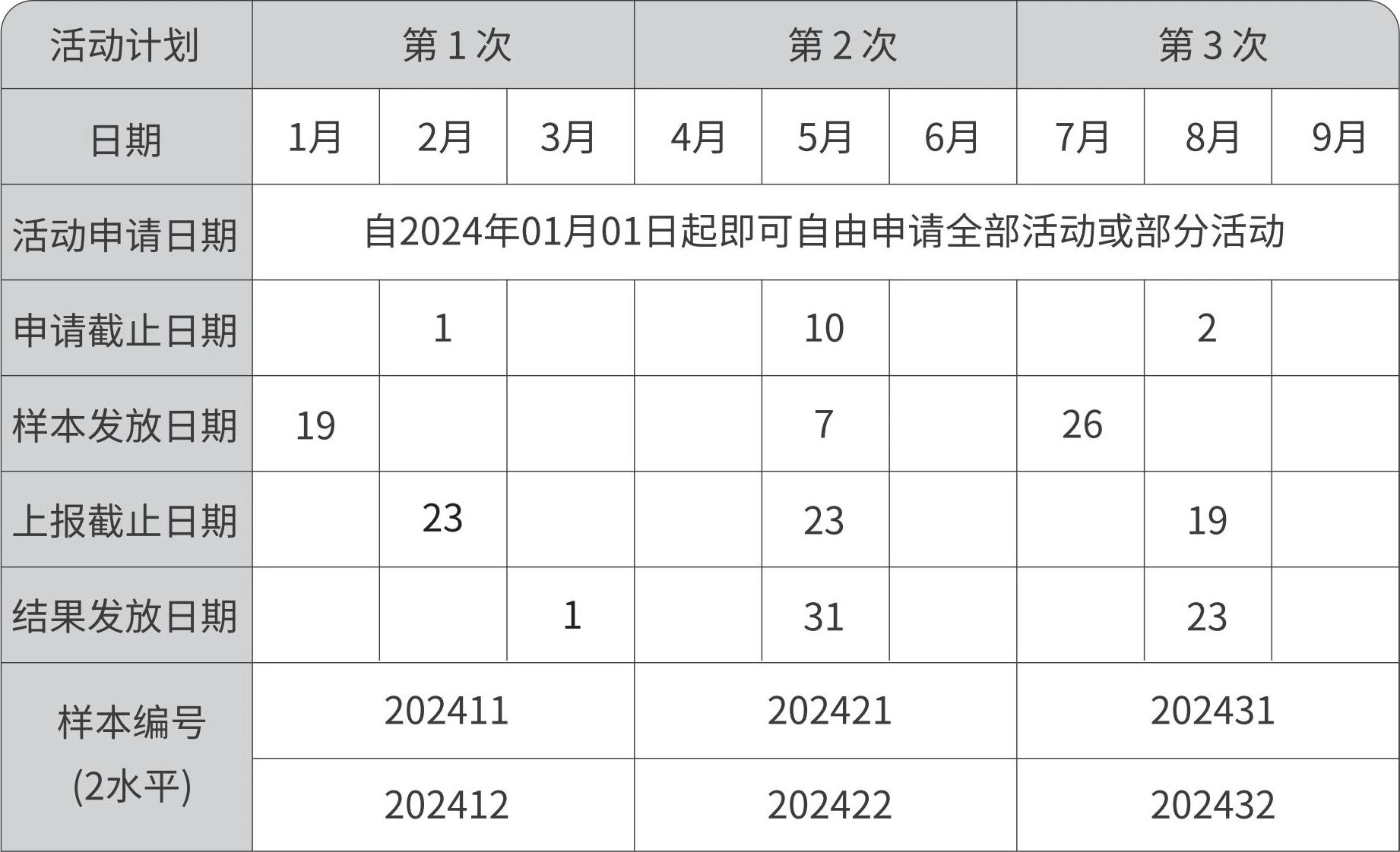 (1) 2024年質量評價活動申請日期為自通知發出之日起至2024年09月01日,各參評實驗室應在截止日期前提出申請。