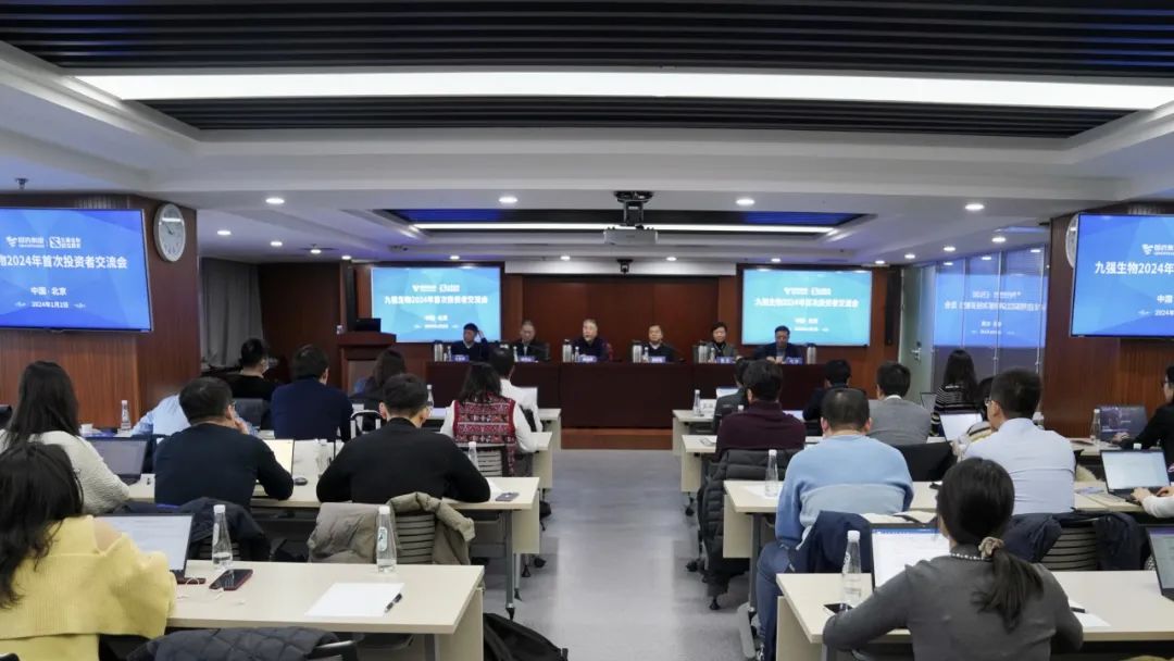 2023年是九強生物發展史上的重要節點,在這一年,公司董事會及領導班子完成了換屆選舉,進一步明確了打造國際化、綜合型的醫療科技平臺公司新的戰略定位。在此特別的時刻,公司于2024年1月2日在中國醫藥大廈3層報告廳召開了2024年首次投資者交流會,和各位投資人分享公司所取得的長足發展、改革思路和戰略規劃。