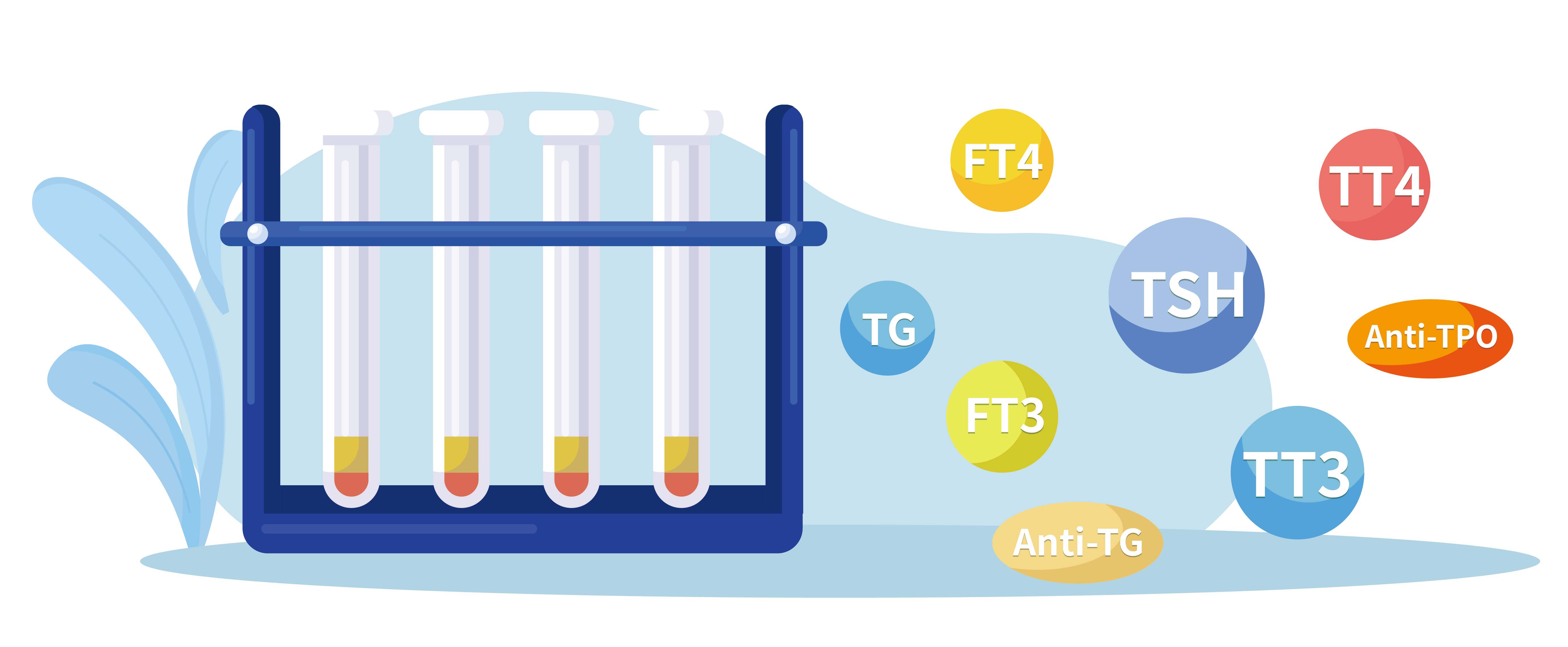 必查項(xiàng)目有:TSH、TT3、FT3、TT4、FT4、TG、Anti-TG、anti-TPO,共計(jì)8項(xiàng)。