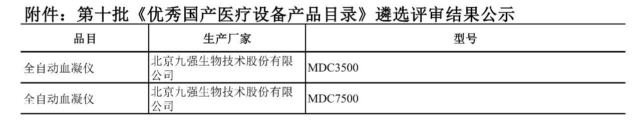 喜訊 | 九強生物凝血分析儀入選第十批《優秀國產醫療設備產品目錄》