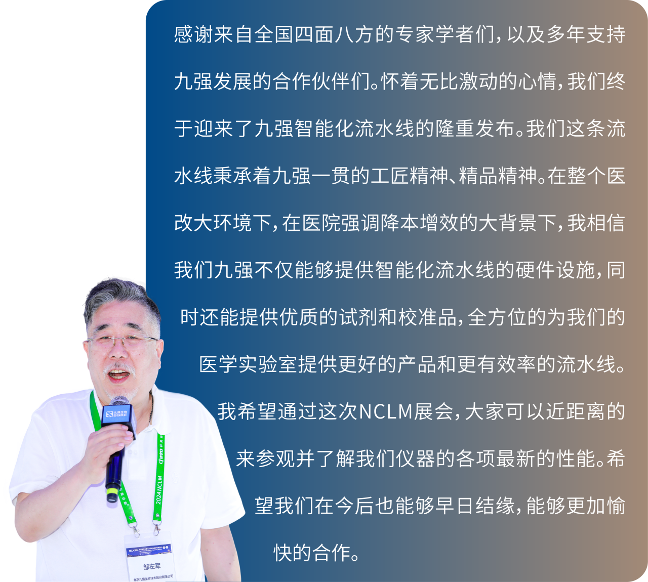 智臻而檢,自享從容。九強生物始終堅持以創(chuàng)新驅(qū)動發(fā)展,不斷突破自我。本次發(fā)布的智能化實驗室解決方案堪稱科技與創(chuàng)新的結(jié)晶,我們用心打造,只為每一次檢測都能更加精準(zhǔn)、高效!