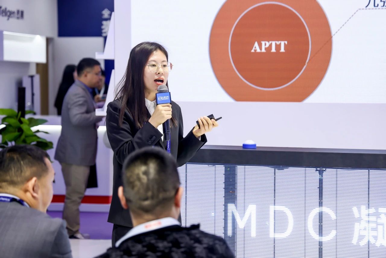 九強生物產品經理劉云婷女士對MDC凝血家族進行了非常詳細的介紹與講解。高精度的凝血分析儀及流水線搭配靈敏的試劑,能夠快速、精準地剖析樣本,大大提升檢測效率。