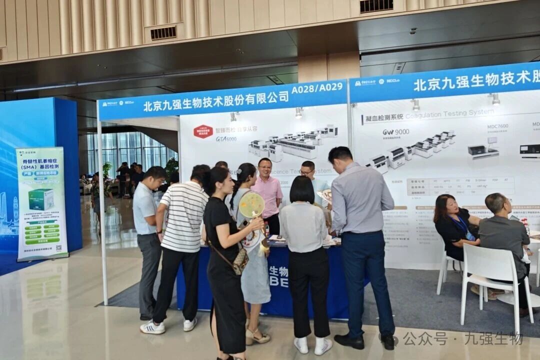 展會期間,九強展臺人頭攢動,來自全國各地的業內同仁紛紛駐足咨詢。公司精心打造的展示區域全面呈現了 "生化、凝血、發光、血型、病理、CTC" 六大檢測系統的技術優勢,充分展現了從常規檢測到精準診斷的全場景解決方案能力。公司工作人員以專業熱情的態度為每一位參觀者詳細講解產品技術細節,圍繞臨床價值進行深入解讀,與專家學者熱議行業前沿觀點。