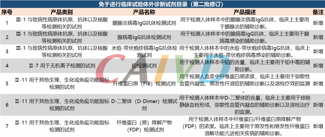 新增7項體外診斷項目進入免臨床試驗醫療器械目錄(第二批修訂)